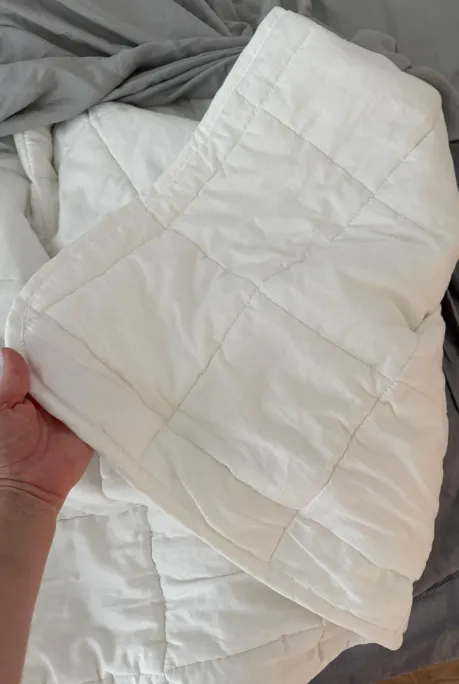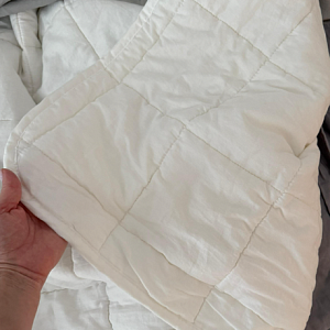 В начале лета приобрели это супер тонкое и супер легкое одеяло. В теплое время года с ним действительно не жарко. Отсутствуют катышки и комкование наполнителя, очень четкие и ровные швы. Спасибо ва...