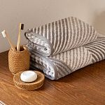 Очень легкие комбинированные полотенца. Действительно изящный цвет и эффектный узор. Прекрасно впитывают, быстро сохнут. Заказала уже третий набор. Я полюбила такие облегченные новинки больше махро...