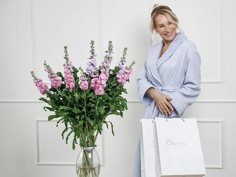 Красивый текстиль нужно красиво преподнести. Все изделия от Cleanelly можно собрать в комплекты (например, халат + полотенца) и упаковать в элегантный короб или лаконичный брендированный пакет с изящным декором. Такое обрамление подчеркнет ваше внимательное отношение к выбору подарка.