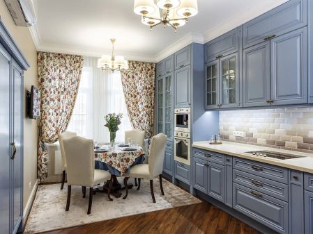 Очень важную роль в создании атмосферы французской провинциальной романтики играет правильно подобранный текстиль. Не бойтесь экспериментировать с ним, ведь именно он поможет легко и быстро придать вашей кухне неповторимый шарм, добавит ей мягкости и душевности.