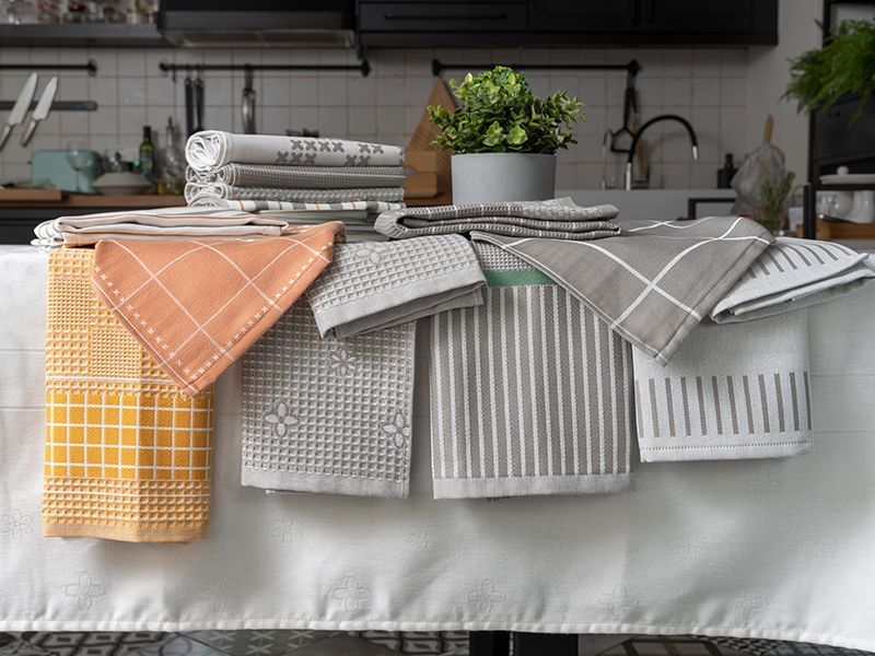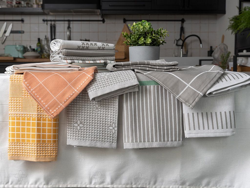 Самые популярные коллекции «Идиллия» (Idillio), «Маленькие радости» (Piccole gioie) и «Добро пожаловать!» (Benvenuto!) идеально подходят для оформления кухонь в современном, неоклассическом стиле и стиле кантри. Они выполнены из 100% хлопка и прекрасно выполняют свои функции – украшают, впитывают влагу, протирают поверхности, ухаживают за руками, быстро сохнут и долго служат при правильном уходе.