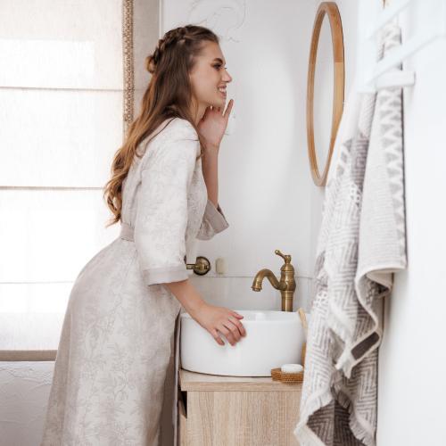 Легкий гладкотканый халат с удобной петелькой – всегда актуальный подарок для себя и близких. Его можно приобрести отдельно, либо в комплекте с полотенцами, мужскими халатами и ковриками для ванной из той же коллекции. Все изделия коллекции Alma di boho представлены в разделе «Интерьерные коллекции» -> «Для ванной» -> «Бохо». Узнать больше о стилистике и особенностях коллекции вы сможете в статье нашего блога.