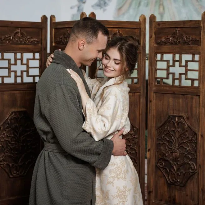 Легкий гладкотканый халат с удобной петелькой – всегда актуальный подарок для себя и близких. Его можно приобрести отдельно, либо в комплекте с полотенцами, халатами и ковриками для ванной из той же коллекции. Все изделия коллекции Moderno Vintage можно посмотреть здесь: Каталог -> «Интерьерные коллекции» -> «Для ванной» -> «Винтаж». Узнать больше о стилистике и особенностях коллекции вы сможете в статье нашего блога.