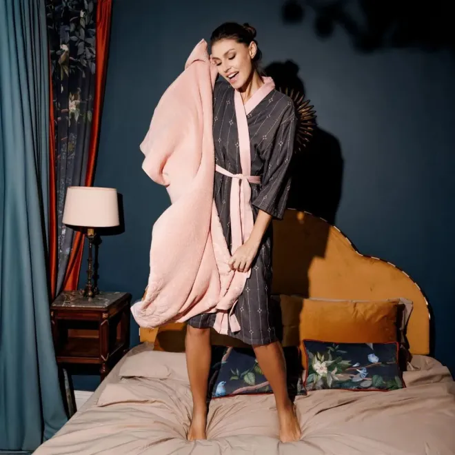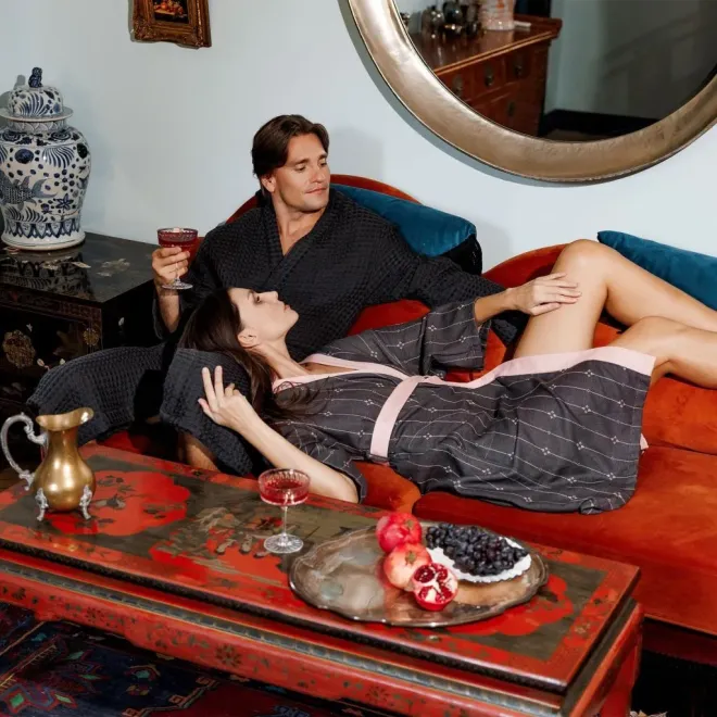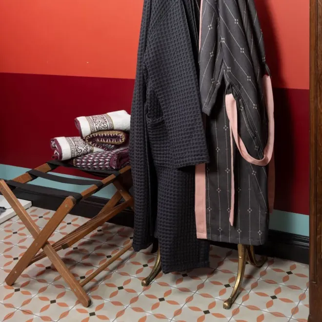 Легкий гладкотканый халат – всегда актуальный подарок для себя и близких. Его можно приобрести отдельно, либо в комплекте с полотенцами, женскими халатами и ковриками для ванной из той же коллекции. Все изделия коллекции Al Massimo представлены в разделе «Интерьерные коллекции» -> «Для ванной» -> «Максимализм». Узнать больше о стилистике и особенностях коллекции вы сможете в статье нашего блога.