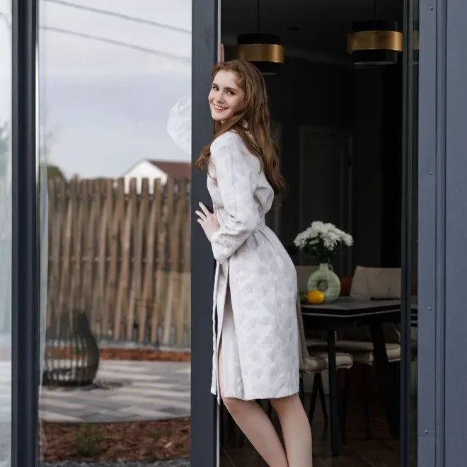 Легкий гладкотканый халат – всегда актуальный подарок для себя и близких. Его можно приобрести отдельно, либо в комплекте с полотенцами, мужскими халатами и ковриками для ванной из той же коллекции. С другими изделиями коллекции Gioia di vivere можно ознакомиться в разделе «Интерьерные коллекции».