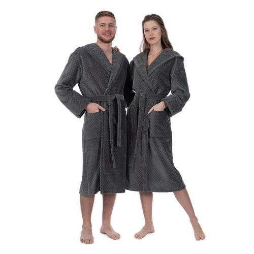 Халат махровый Новая эко-классика универсальный с капюшоном серый
