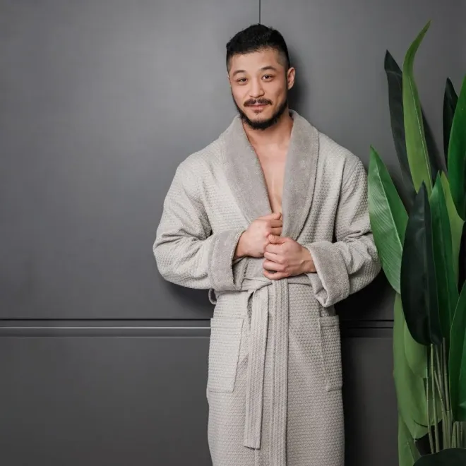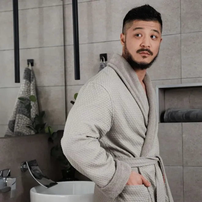 Халат вафельный Mia armonia мужской комбинированный серый