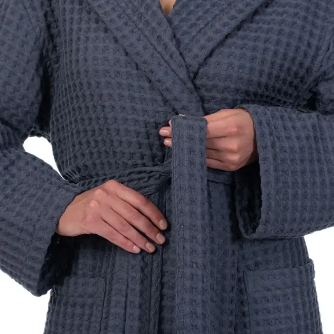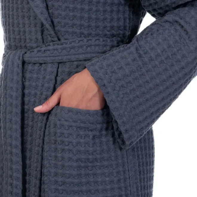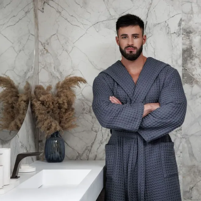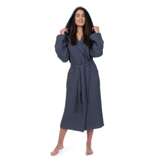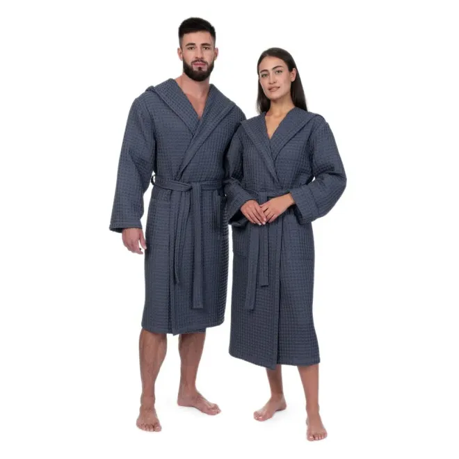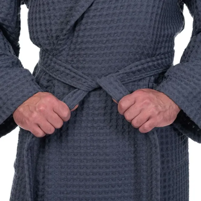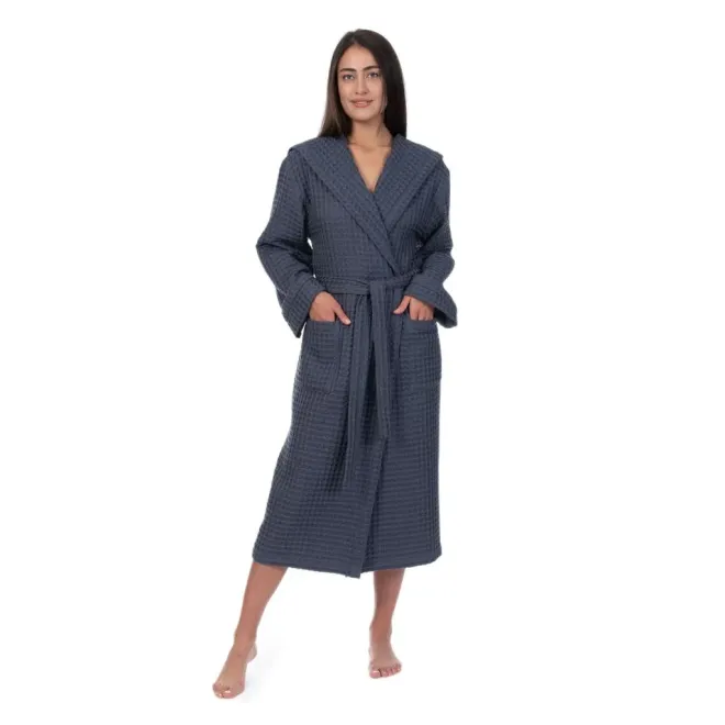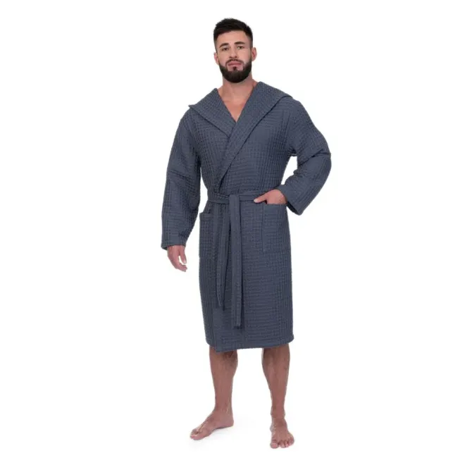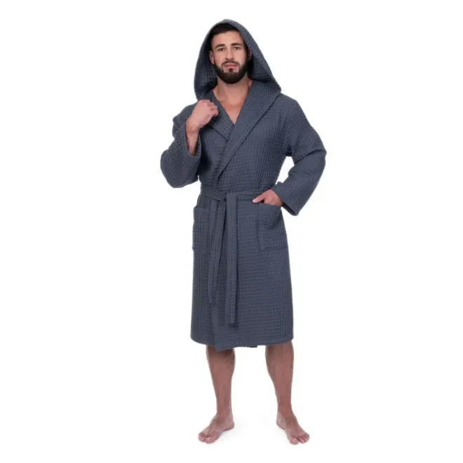 Халат вафельный Base del comfort универсальный с капюшоном (рельефный) серый