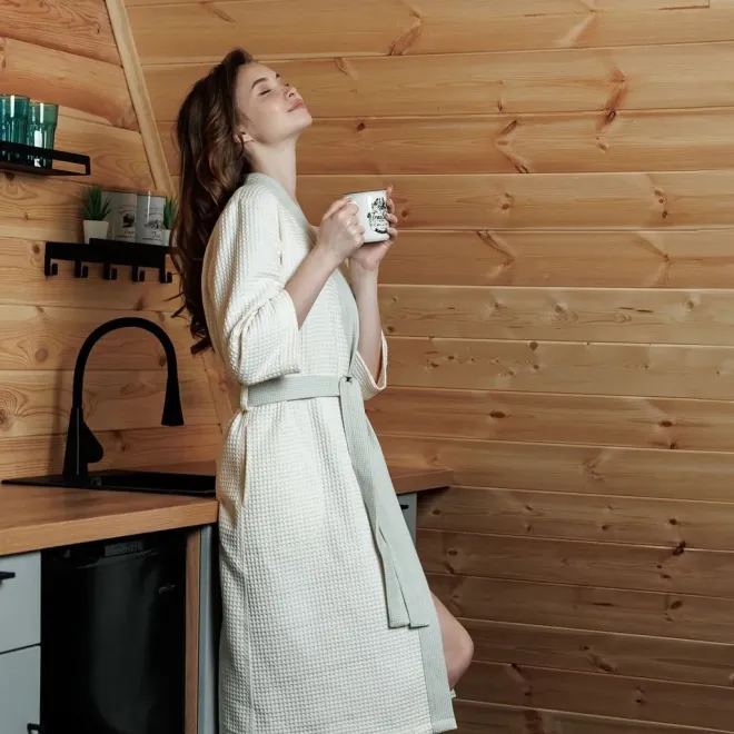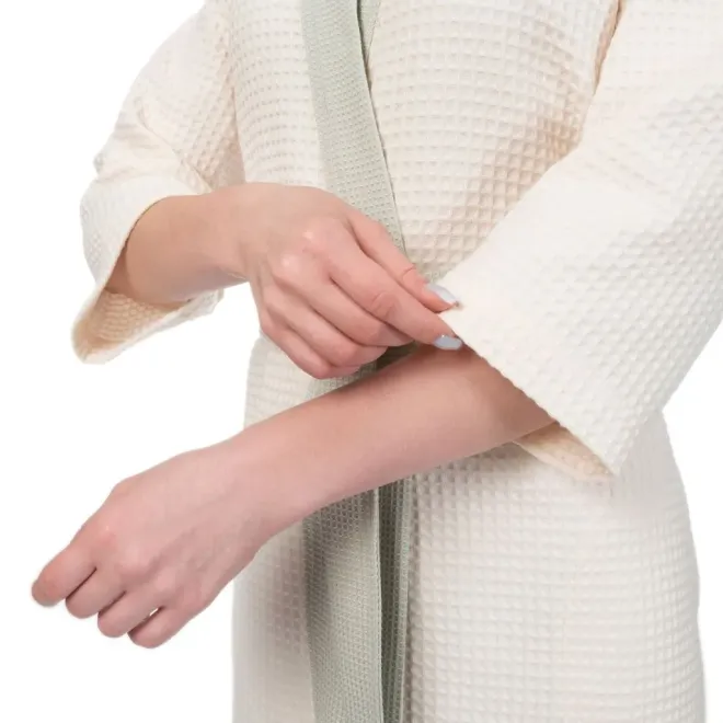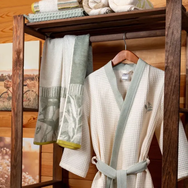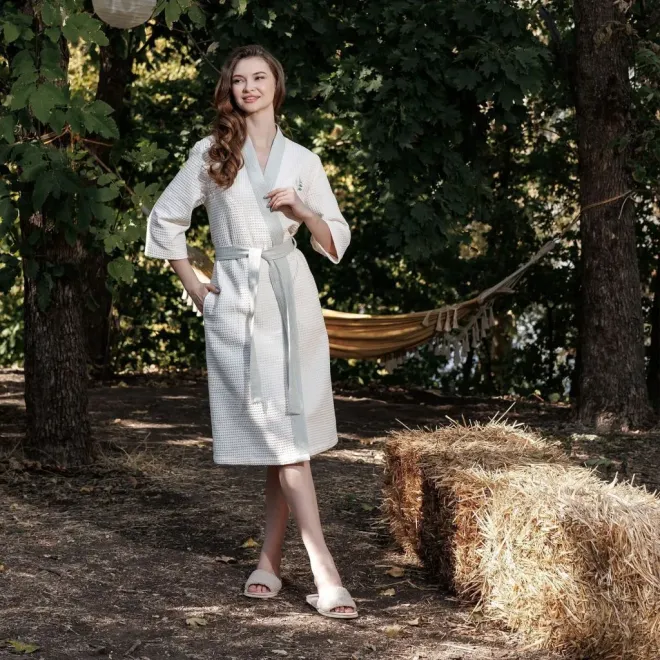 Легкий вафельный халат – всегда актуальный подарок для себя и близких. Его можно приобрести отдельно, либо в комплекте с полотенцами, мужскими халатами и ковриками для ванной из той же коллекции. Полный ассортимент коллекции Natura della vita доступен для ознакомления в следующем разделе: Каталог -> «Интерьерные коллекции» -> «Для ванной» > "ЭКО". Узнать больше о стилистике и особенностях коллекции вы сможете в статье нашего блога.