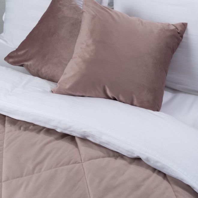 С лицевой стороны изделие выполнено из качественного полиэфира с приятной бархатной поверхностью, а с изнаночной – из микрофибры с эффектом велюра, которая предотвращает скольжение изделия по кровати. Внутри покрывала – «дышащий» полиэфирный наполнитель, который обеспечивает комфортную мягкость. Стеганый узор в виде ромбов придает изделию особую текстуру и объем, создавая уютный и стильный образ спальни.