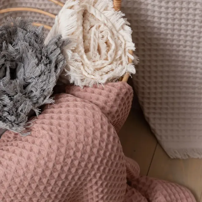 Уход. Для сохранения свойств изделия рекомендуется стирать его при температуре 40° и использовать мягкие средства для стирки и качественный кондиционер для белья согласно указанной в инструкции дозировке. При соблюдении этих правил покрывало сохранит насыщенность цвета, форму и размеры даже после многократных стирок. Более подробную информацию об уходе за изделиями из хлопка можно найти в статьях нашего блога.