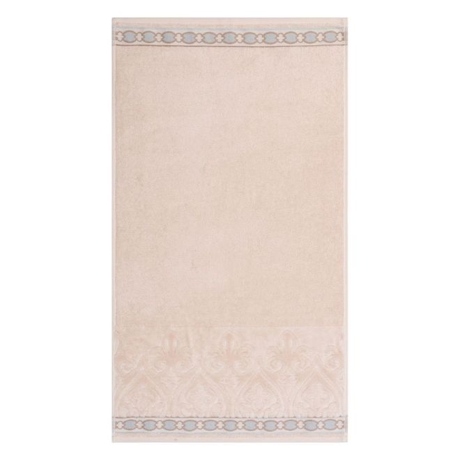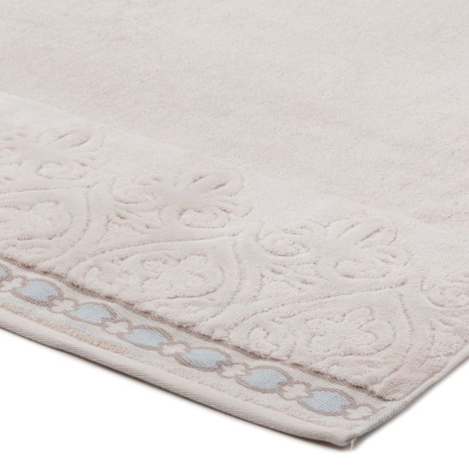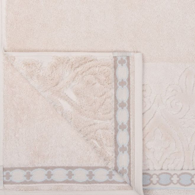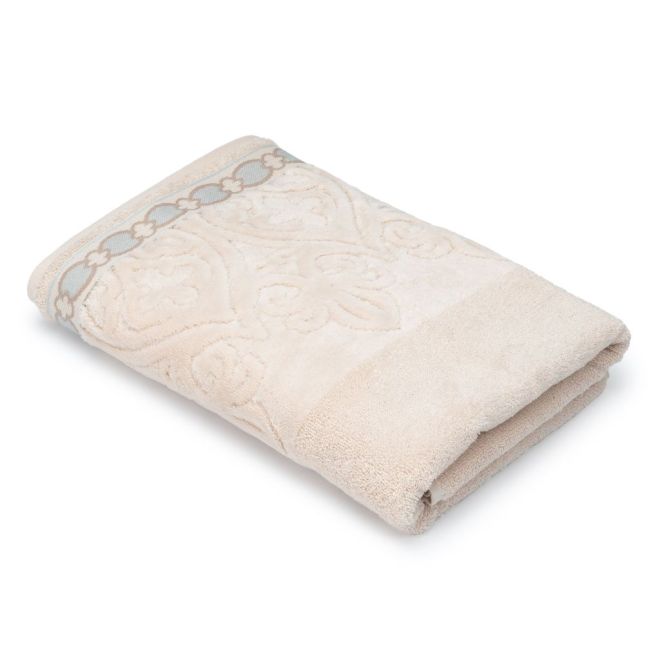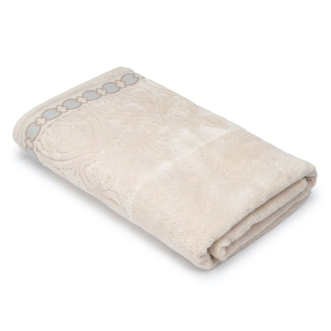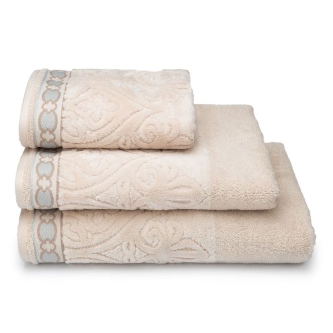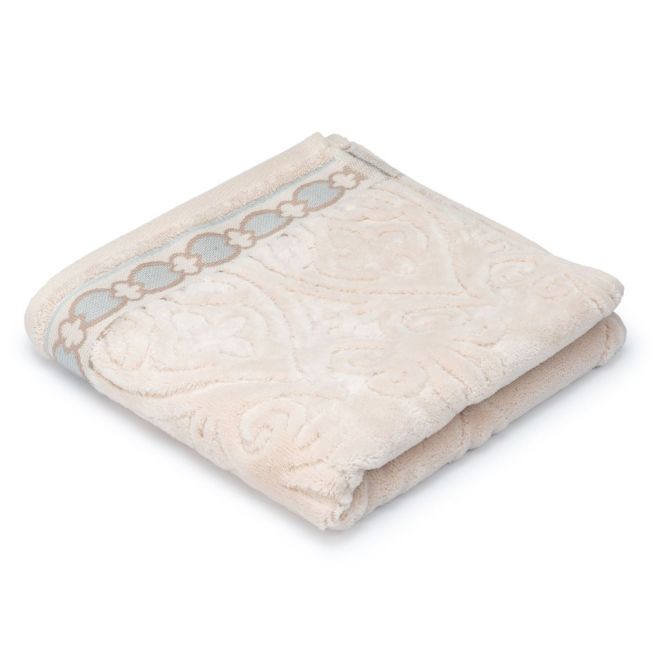 Полотенце выполнено из длинноволокнистого египетского хлопка. Изделия из этой премиальной пряжи обладают уникальной воздухопроницаемостью и повышенной гигроскопичностью. Махровое полотенце кремово-белого цвета декорировано дизайном, повторяющим замысловатую архитектуру венецианских улиц. В нижней части полотна расположились ажурные стрельчатые арки и растительный узор. Рисунок передан с помощью рельефа в структуре махровой ткани. Стриженые петли внизу изделия создают велюровый эффект. Бордюры дополнены воздушной цепью из четырехлистника и геометрических элементов, выполненных цветными полиэфирными нитями. Полотенце размером 50х90 сантиметров и плотностью 480 г/м2 украсит интерьер ванной комнаты.