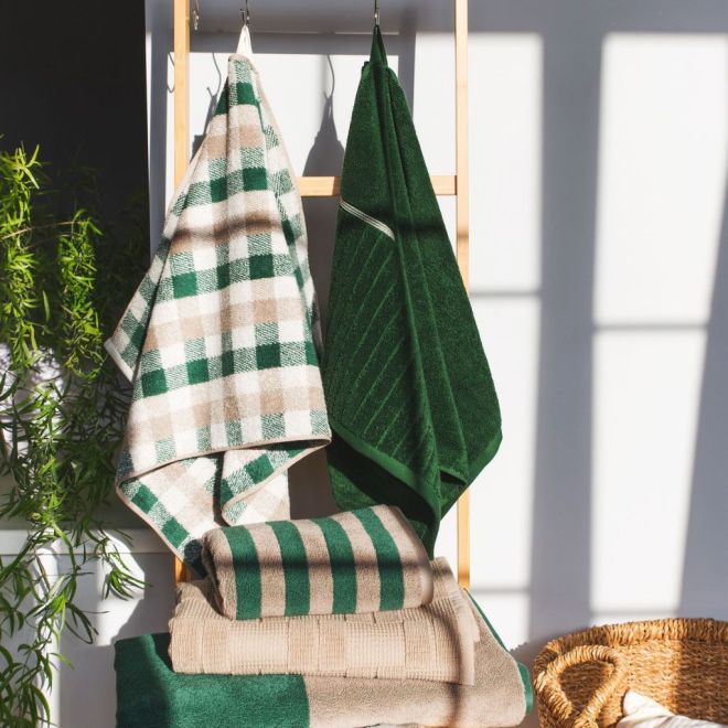 Полотенце махровое La mia casa с петелькой темно-зеленый