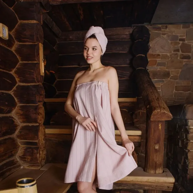 Комплект для сауны Mente sana (парео + чалма) женский розовый