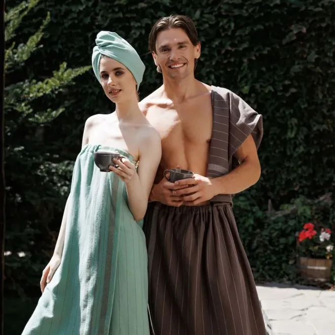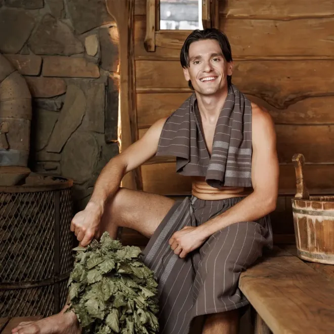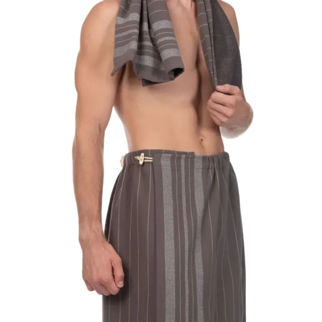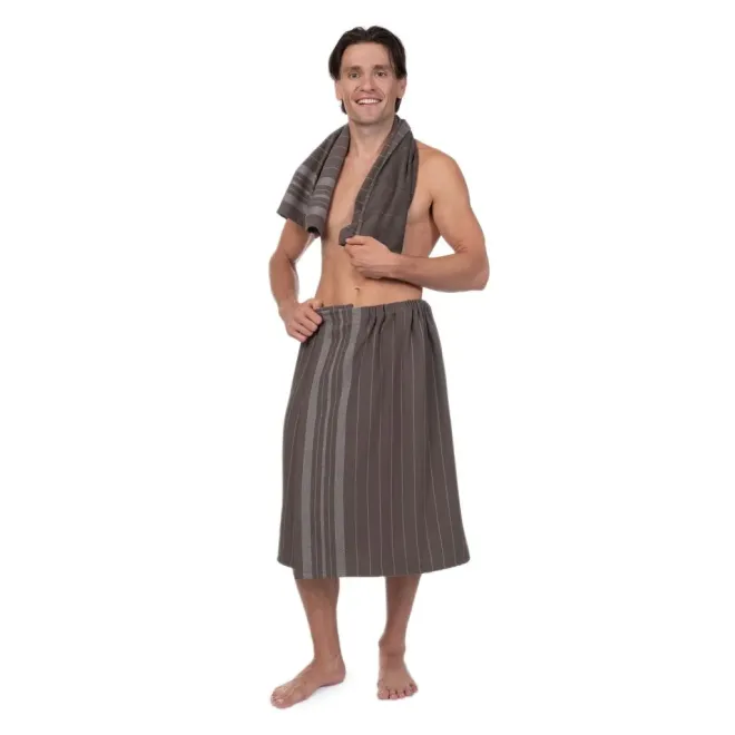 Комплект для сауны Здоровый дух (килт + полотенце) мужской серо-коричневый
