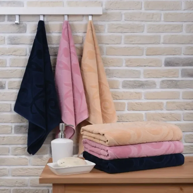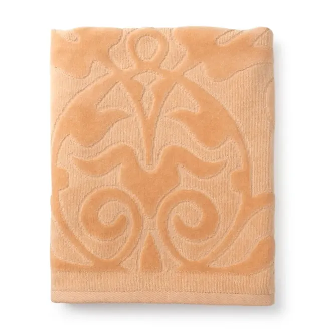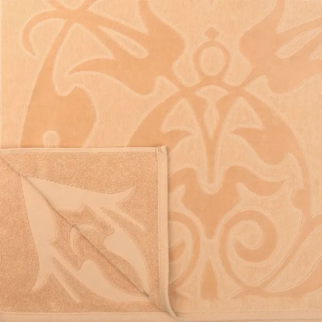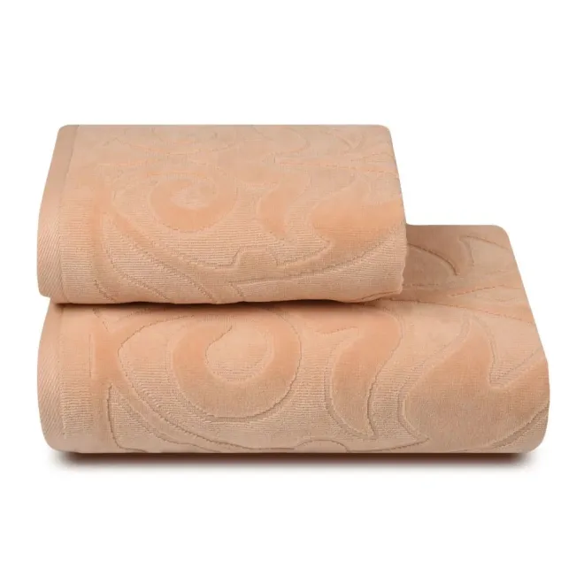 Полотенце выполнено из нежной стриженой махровой ткани светло-бежевого цвета. Полотно украшено утонченным рельефным орнаментом в виде сада цветущих лилий. Объемный принт выполнен с помощью разной высоты петли. Изделие обладает отличной впитываемостью, а махровая ткань тонизирует кожу после душа. Утро с таким воздушным полотенцем будет дарить ей ощущение легкости и романтичное настроение на весь день.