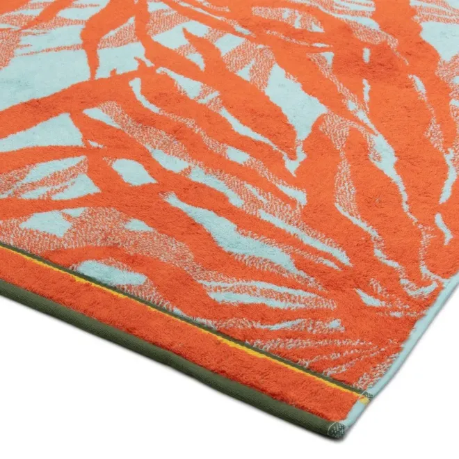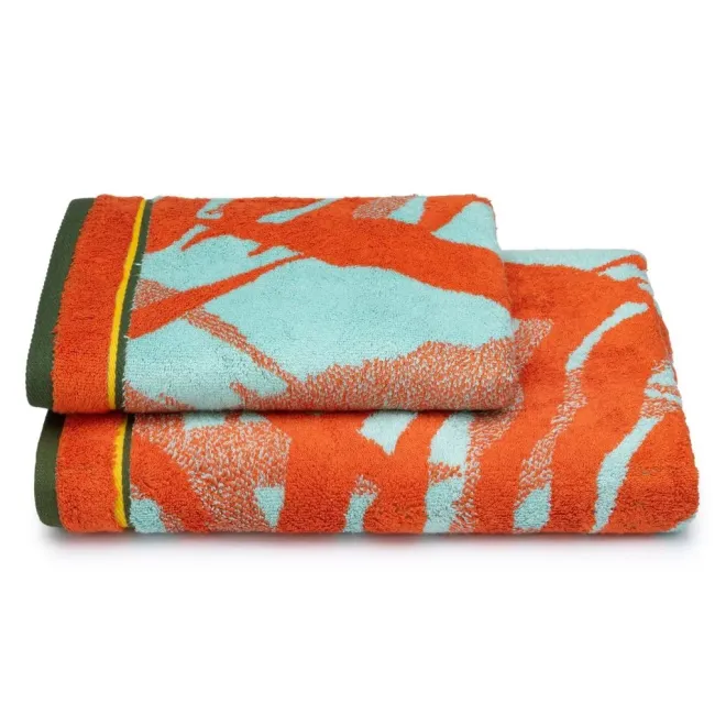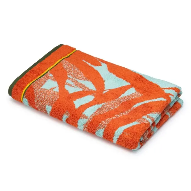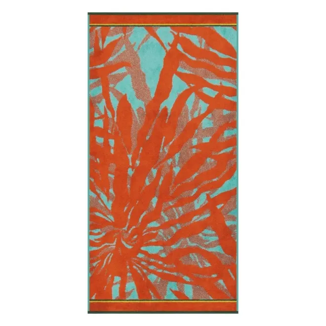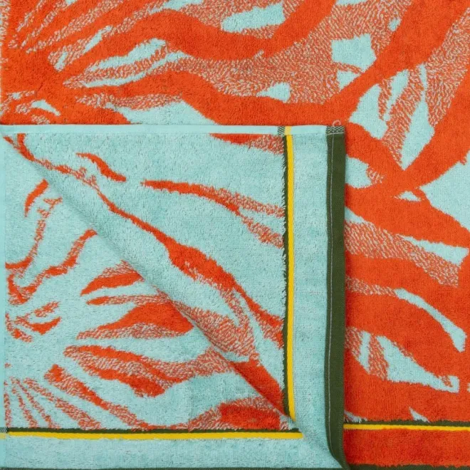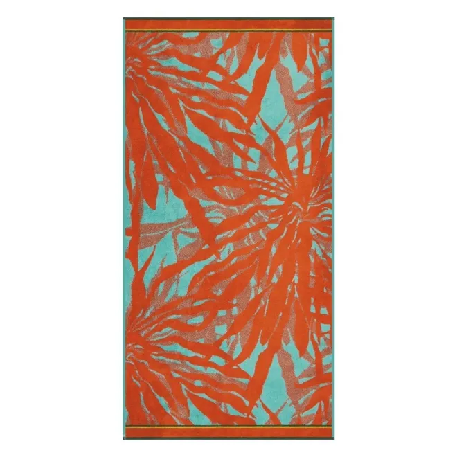 Махровое полотенце выполнено из натурального хлопка с добавлением бамбуковых волокон. Изделие декорировано растительным рисунком в оранжевом и светло-зеленом цветах. Сюжет обрамлен бордюром в тон. Благодаря свойствам бамбука махровое полотенце обладает деликатным блеском и особой мягкостью, хорошо впитывает влагу и быстро сохнет.