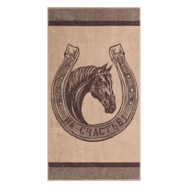 Полотенце украшает идеально четкое изображение лошади и подковы - двух мощных символов. Образ в бежево-коричневой гамме символизирует удачу, свободу и энергию жизни. Такая метафоричность делает этот сувенир по-настоящему значимым.