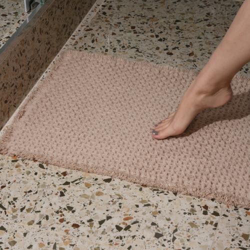 Махровый коврик для ног из натурального хлопка является эстетической деталью интерьера и создает комфорт в ванной и спальной зонах. Коврик быстро впитывает влагу и предотвращает скольжение. Высокая плотность изделий обеспечивает сухость, пористая структура позволяет пропускать воздух, а исключительная мягкость петель приносит удовольствие и обеспечивает массажный эффект.