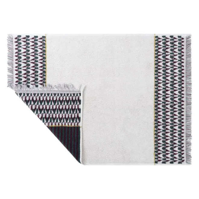 * Благодаря особой технологии обработки махровых петель воздухом на такой коврик особенно приятно выйти после ванной или душа – он мягкий и превосходно впитывает влагу. * Этот эффектный коврик имеет двусторонний дизайн. С лицевой стороны его украшает принт с имитацией крупной вязки, а с изнаночной к нему добавляются вертикальные полоски.