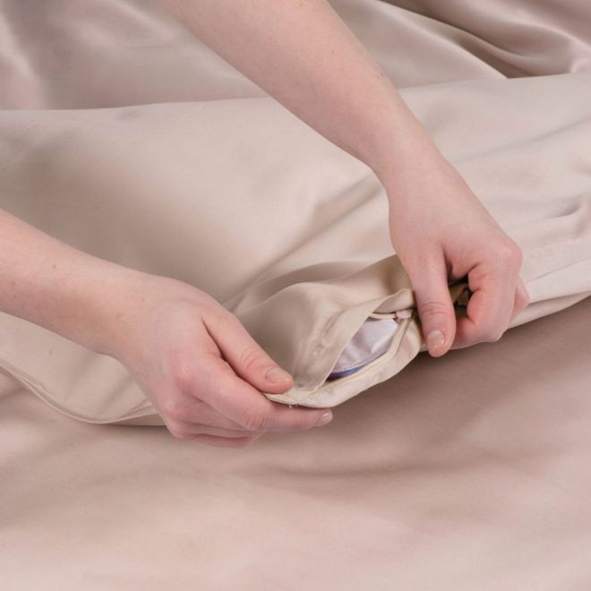 Рекомендации по уходу. Изделия из тенселя рекомендуется стирать в деликатном режиме при температуре не выше 30 градусов, не отбеливать и не сушить в машинке. После стирки белье следует высушить в расправленном виде и при необходимости прогладить его в слегка влажном состоянии при температуре не выше 150 градусов. Допускается профессиональная сухая чистка в щадящем режиме.