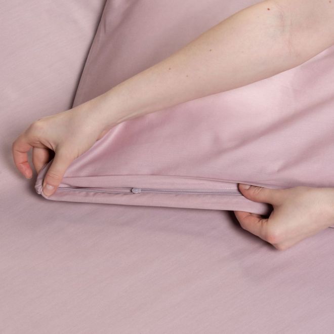 Для удобства смены постельного комплекта пододеяльник дополнен застежкой-молнией, а наволочки с декоративными бортиками «ушками» – клапанами по широкой стороне. Белье из сатина отличается мягкостью и прочностью. Натуральные волокна хлопка отлично пропускают воздух и сохраняют тепло. Сатин практически не сминается. После сна достаточно разгладить складки белья рукой, чтобы придать постели эстетичный вид. Сатин рекомендуется стирать при температуре не выше 40 градусов и не отбеливать. Также возможна барабанная сушка при низких температурах. При соблюдении требований к уходу ткань долго не теряет цвет и естественный блеск.