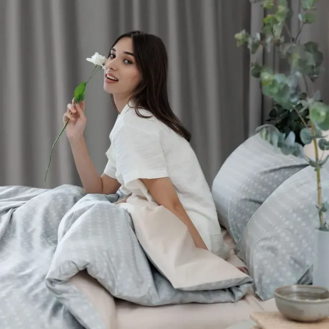 Сатиновое белье изготовлено из хлопка. Натуральная компактированная пряжа придает сатину особую прочность и долговечность, прекрасно пропускает воздух и отводит влагу, создавая комфортный микроклимат в постели. Зимой такое постельное белье согреет, а летом приятно охладит – а, значит, качество сна значительно вырастет.
