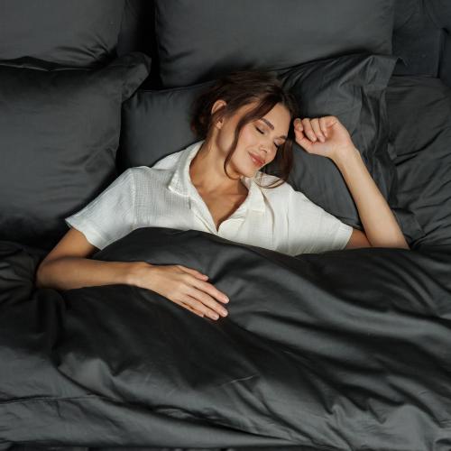 В состав евро-комплекта входят 2 наволочки с ушками 50х70 см, 2 наволочки 70х70 см, пододеяльник 200х220 см и простыня 240х260 см (подходит для высоких матрасов размером 160х200 см и 180х200 см). Пододеяльник в нижней части закрывается на скрытую молнию с пуллером – собачка в ней отсутствует и поэтому она не сломается и не будет цепляться за ткань. Наволочки закрываются на удобный клапан.