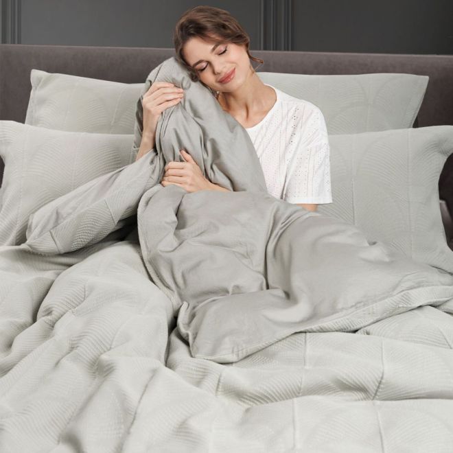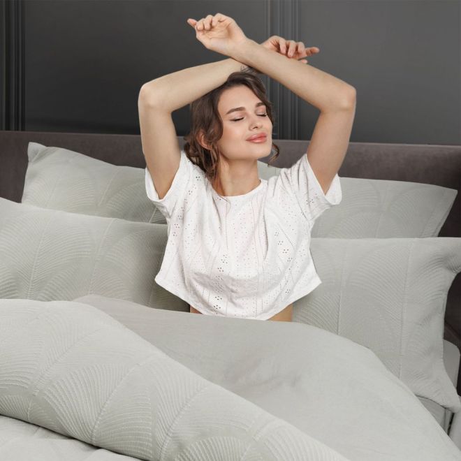Рельефная сторона, также из 100% хлопка, имеет декоративную функцию. Просто переверните наволочки после сна и застелите кровать пододеяльником – и спальное место приобретет опрятный вид без дополнительных пледов и покрывал!