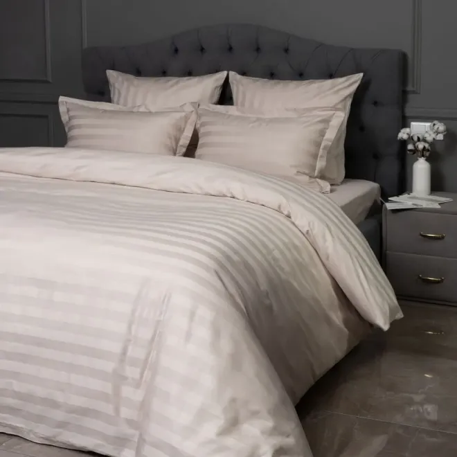 Наволочка с ушками 50х70 Big Stripe (сатин) светло-бежевый