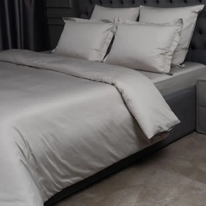 Наволочка нежного и изысканного жемчужно-серого оттенка выполнена из премиального материала – мако-сатина. В процессе изготовления ткани применяются безопасные дополнительные технологии, одна из них мерсеризация – предотвращает выцветание, сохраняет исходный цвет, гигроскопичность и прочность материала, а также придаёт ему шелковистый блеск даже после многократных стирок. Сон на постельном белье из мако-сатина будет комфортным в любое время года – этот материал отлично пропускает воздух, отводит влагу и создает комфортный микроклимат в постели.