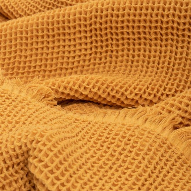 Шикарный. Мягкий, структура такая пружинистая. Уже постирала, внешний вид не изменился. Большой плюс, что его не надо гладить.