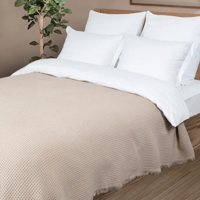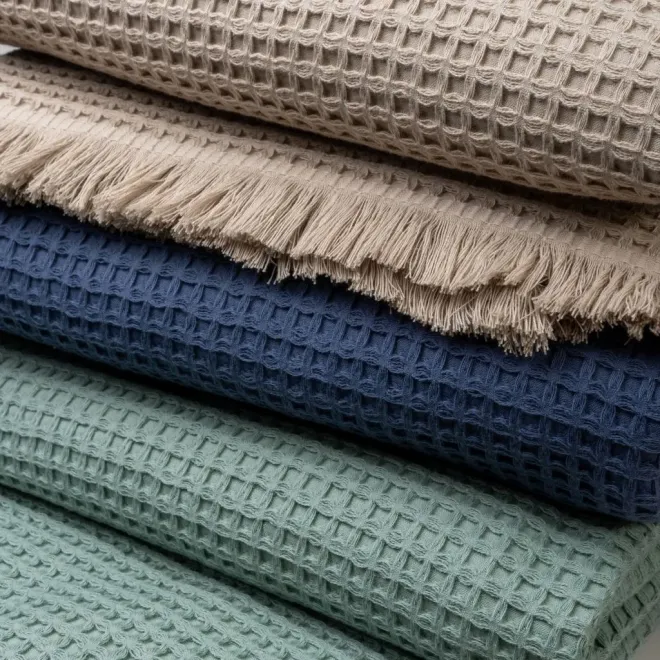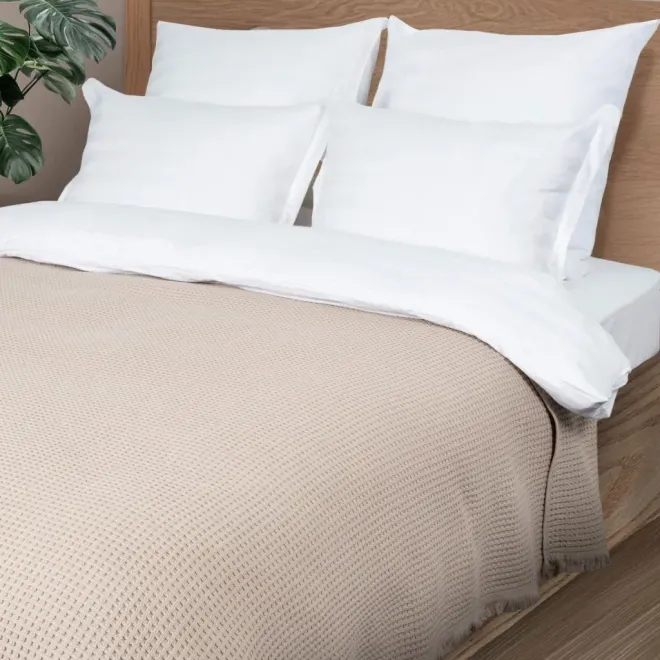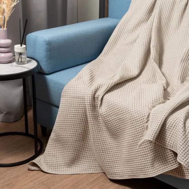 Уникальная структура пледа-покрывала плотностью 310 г/м2 передана сложным жаккардовым переплетением, которое выполняется по особой технологии на самом современном оборудовании. Объемная, пружинящая фактура дарит очень приятные тактильные ощущения, а специальная технология обработка воздухом АЭРО делает это изделие особенно мягким и приятным на ощупь. Изделие из натуральной пряжи не вызывает аллергию и не электризуется.