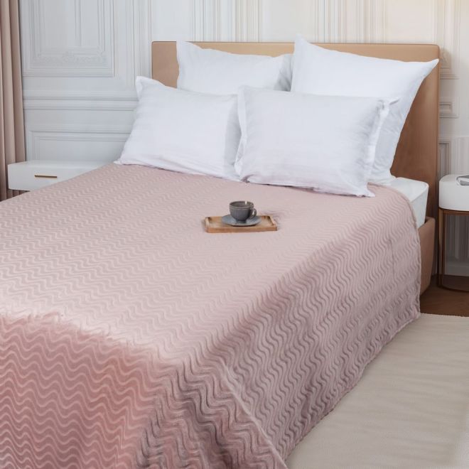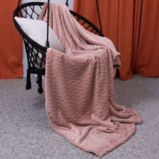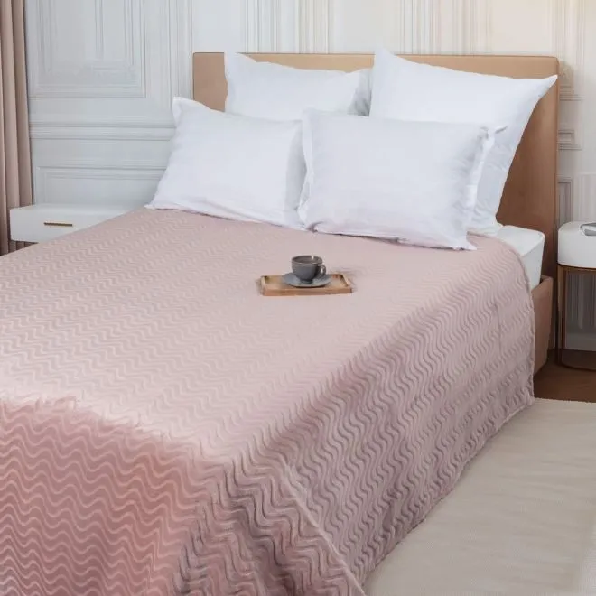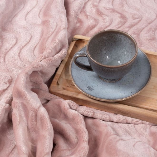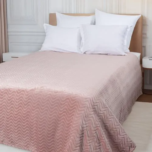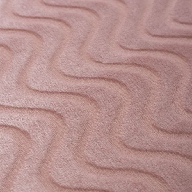 Плед представлен в благородном приглушенном оттенке пепельной розы и украшен выстриженным рельефным узором в виде волн. Он очень приятный наощупь: его фактура напоминает мягкий стриженный мех. Благодаря универсальному оттенку и лаконичному дизайну такой плед украсит ваш собственный интерьер и станет прекрасным подарком на любой праздник.