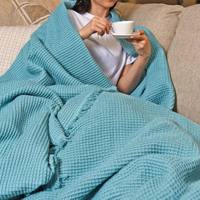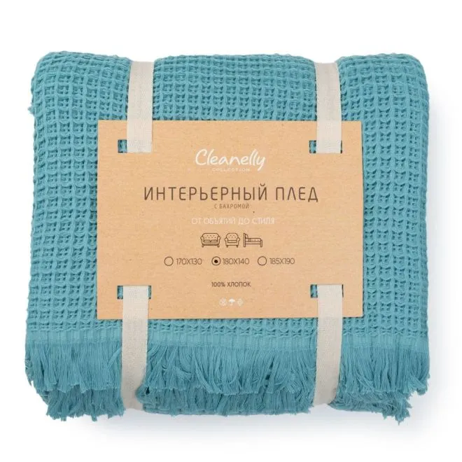 Плед Tocco 180х140 с бахромой мятно-бирюзовый