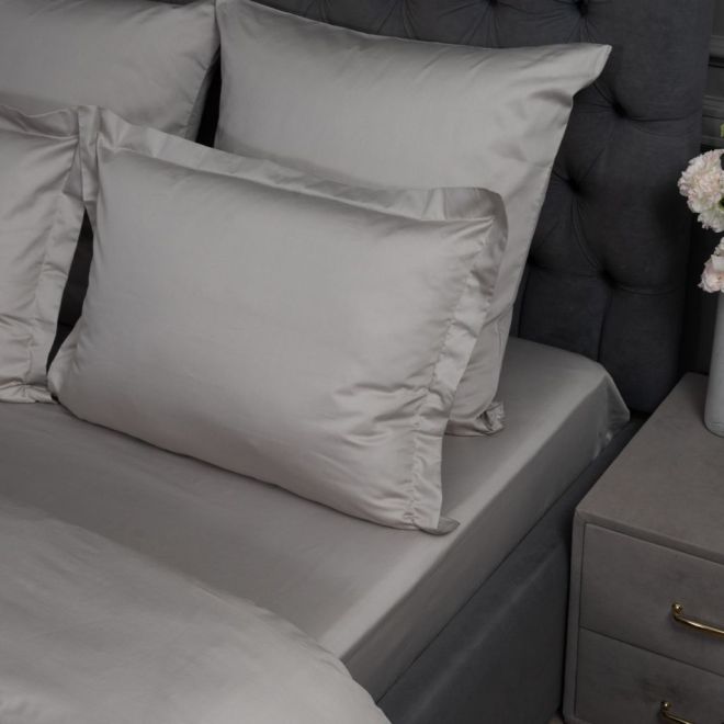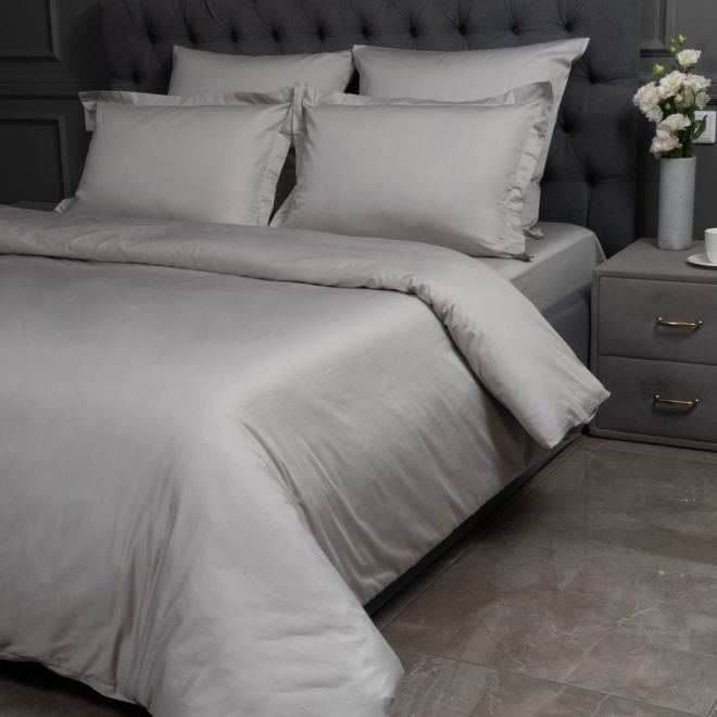 Однотонная простыня нежного и изысканного жемчужно-серого оттенка выполнена из премиального материала – мако-сатина. Плотность ткани 300 ТС. Она очень мягкая, гладкая и деликатно блестит как шелк, при этом она очень прочная и сохраняет форму и цвет даже после многократных стирок. Сон на постельном белье из мако-сатина будет комфортным в любое время года – этот материал отлично пропускает воздух, отводит влагу и создает комфортный микроклимат в постели.