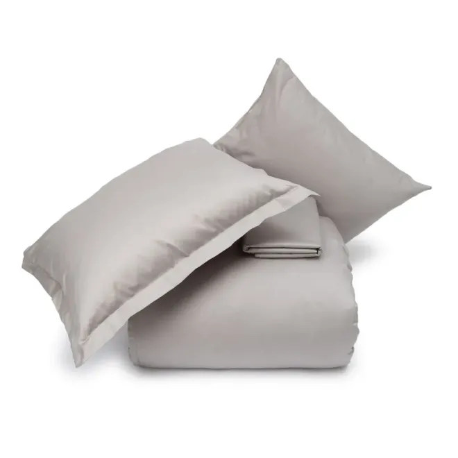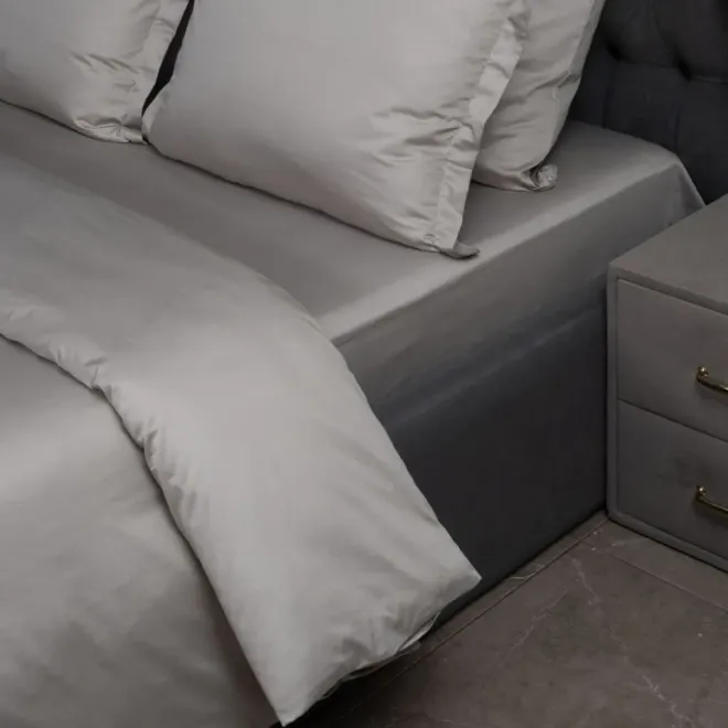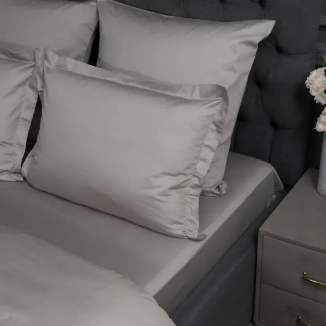 Вы можете приобрести простыню отдельно или в комплекте с пододеяльниками и наволочками из мако-сатина того же или другого подходящего оттенка.