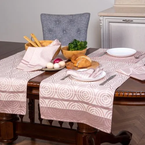 Столовая дорожка размером 50х150 сантиметров или комплект со скатертью, полотенцами или салфетками этой же коллекции – оригинальный и практичный подарок для хозяйки.