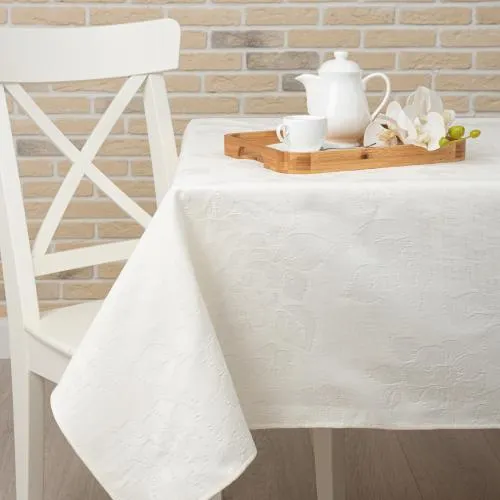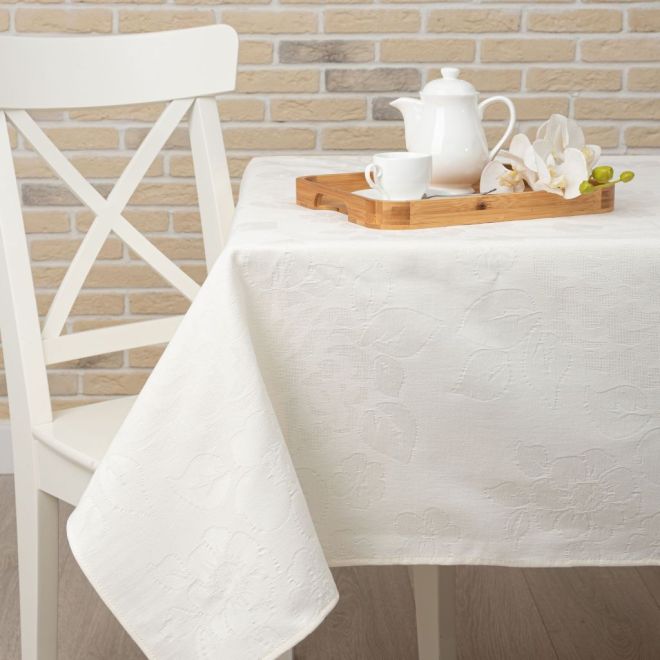 Скатерть цвета зефира выполнена из гладкого хлопкового полотна. Изделие украшено цветами роз. Нежнейший декор обеденного стола будет к месту и в будни, и на праздничном застолье. Натуральная ткань будет долго сохранять свои качества и придаст столовой зоне изящный вид.